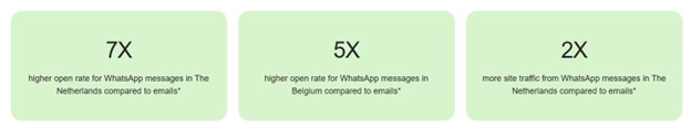 • زيادة بمعدل 7 مرات في معدل فتح الرسائل في هولندا و 5 مرات في بلجيكا مقارنة بالبريد الإلكتروني.
